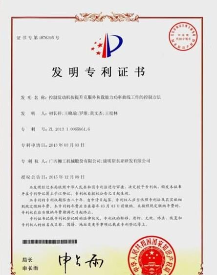 近日,柳工“控制發動機按提升克服外負載能力功率曲線工作的控制方法”的發明專利獲得國家專利局授權。這是柳工進入發動機領域的第一項技術發明專利,同時也是與世界級企業康明斯合作的標志性技術成果。