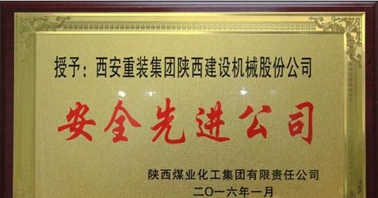 近日,陜西建設機械股份有限公司榮獲陜西煤業化工集團2015年度“安全先進公司”稱號,受到陜煤化集團表彰獎勵。