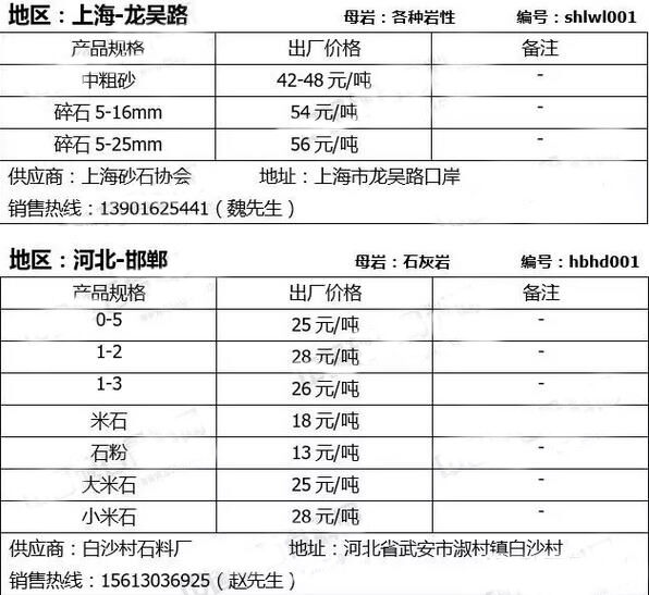 大宗砂石在線交易是“互聯網+砂石”生態圈重要一環,今日小編給大家整理此份報價表旨在幫助廣大砂石需求商(攪拌站、工程建設單位、砂石貿易商等)以最快捷、最高效、最優惠的方式來獲取優質的砂石產品,同時也為誠信優秀的砂石企業打開一扇創新之窗,讓好的企業得到良性發展,讓好的砂石產品獲得市場機會,砼商網將定期為市場提供各種規格的砂石產品及報價信息,敬請關注!