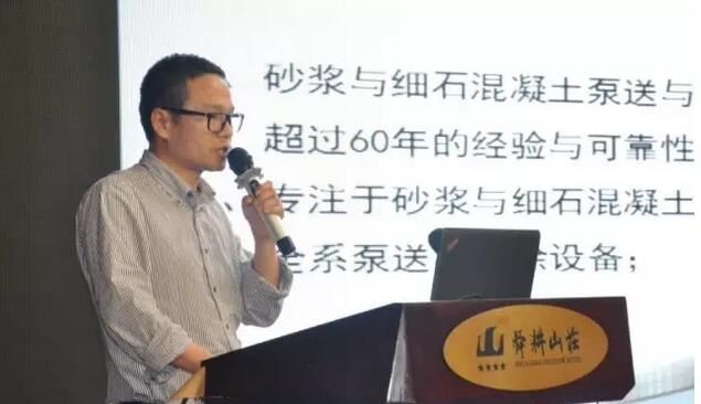 ▼ 中聯重科干混部技術總監吳漫天做“預拌砂漿3.0”的演講;