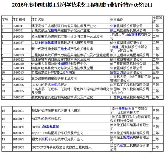 本年度共有20家行業企業獨立或與相關高校聯合報送了43項評審項目,涉及起重機械、掘進機械、環衛機械、土方機械、路面機械、混凝土及制品機械、搶險救援機械、工業車輛、配套件等多類產品及關鍵技術的應用和產業化,申報項目呈現出創新點多、技術含量高、社會效益和經濟效益顯著等特點。