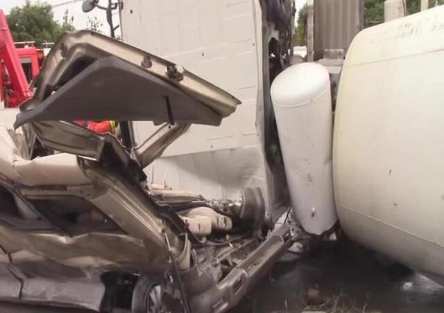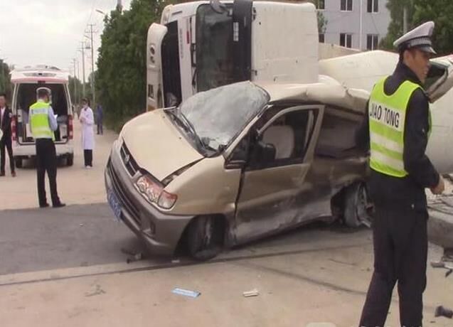 【事故】面包車被攪拌車壓成“鐵餅” 駕駛員毫發未傷