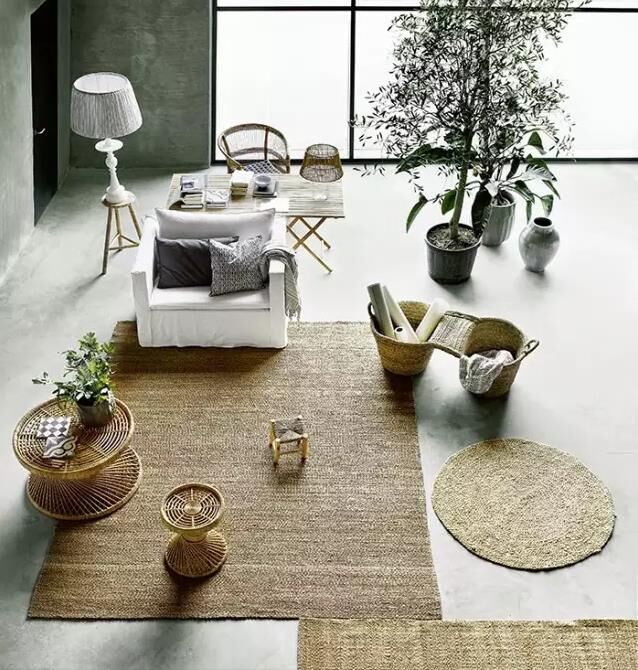 編制地毯與一盆綠色的植物,讓這個客廳空間多了幾分自然的氣息,雅致也不失生機。
