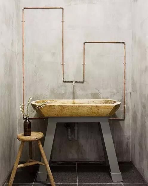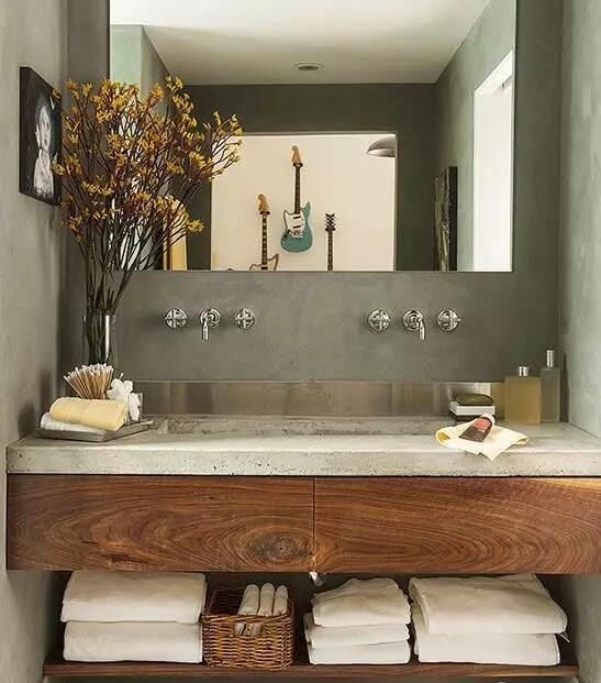 一眼就愛上這個洗漱空間,水泥與木質竟然搭配地如此完美。