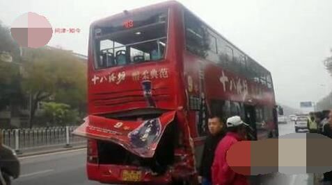 昨天6點多,在中環線育紅路由鐵東路去往紅星路方向,一輛載滿水泥的水泥攪拌車在行駛過程中突然之間撞上前方的一輛48路雙層公交車,導致公交車上多人受傷。