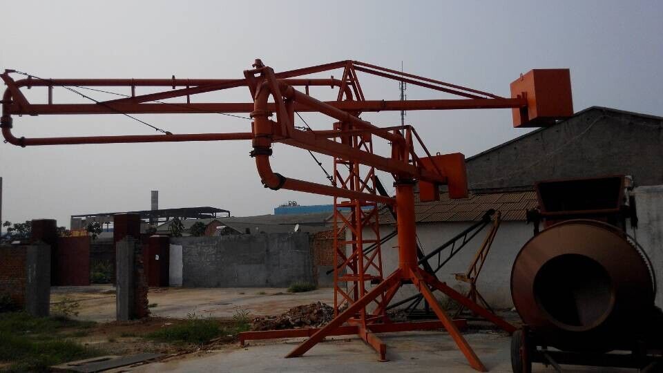 河南金源布料機桿采用回轉,臂架式布料結構,配用125MM輸送管,360度回轉,整機手動操作。具有結構簡單,強度、剛性可靠,操作簡單,靈活,維修方便等特點,與混凝土泵配套使用可廣泛的應用于民用與工業建筑的混凝土澆注工程中。