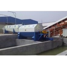 該系統主要由:攪拌車加水清洗裝置,溜槽輸送裝置,砂石漿水分離裝置,和泥漿水后處理裝置組成?;炷凛斔驮O備清洗后,將殘余混凝土排入溜槽中,在高壓水流沖擊下,經溜槽進入砂石分離機,在不斷旋轉的分離機作用下,對混凝土進行充分的清洗,同時將砂、石進行分離,分離后的砂、石在導料葉片的作用下背向流動,再通過提升式出料口排出分離機,分別堆放。清洗后的漿水從分離機的底部排出進入沉淀池逐級沉淀后循環使用或進入攪拌池回收利用。進入攪拌池(一般情況2個攪拌池)的漿水為了防止沉淀凝固,需通過攪拌器的作用,攪拌器的工作為間歇式。分離出水泥漿在連續的攪拌器作用下,再通過高壓污水泵輸送到攪拌樓中待生產計量再利用。整個控制系統設有手動和自動控制,方便控制設置,整個系統運行可靠,故障率低,維護量少等特點。