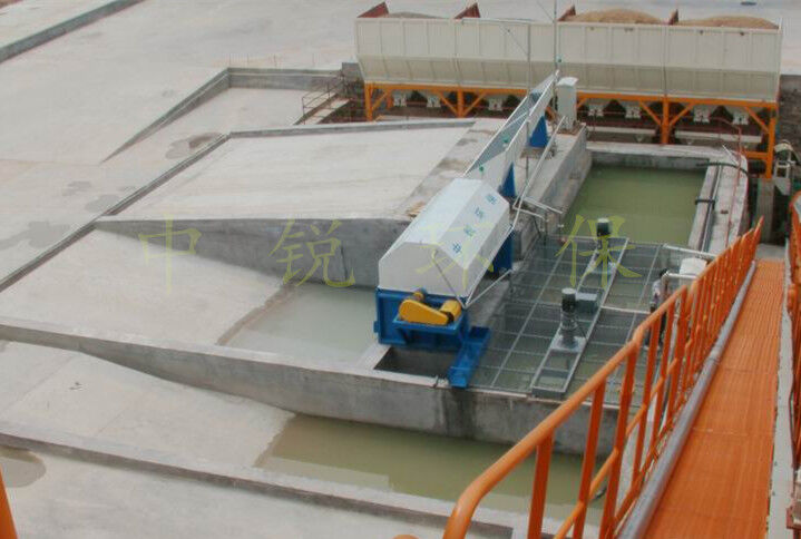 該系統主要由:攪拌車加水清洗裝置,溜槽輸送裝置,砂石漿水分離裝置,和泥漿水后處理裝置組成。混凝土輸送設備清洗后,將殘余混凝土排入溜槽中,在高壓水流沖擊下,經溜槽進入砂石分離機,在不斷旋轉的分離機作用下,對混凝土進行充分的清洗,同時將砂、石進行分離,分離后的砂、石在導料葉片的作用下背向流動,再通過提升式出料口排出分離機,分別堆放。清洗后的漿水從分離機的底部排出進入沉淀池逐級沉淀后循環使用或進入攪拌池回收利用。進入攪拌池(一般情況2個攪拌池)的漿水為了防止沉淀凝固,需通過攪拌器的作用,攪拌器的工作為間歇式。分離出水泥漿在連續的攪拌器作用下,再通過高壓污水泵輸送到攪拌樓中待生產計量再利用。整個控制系統設有手動和自動控制,方便控制設置,整個系統運行可靠,故障率低,維護量少等特點。