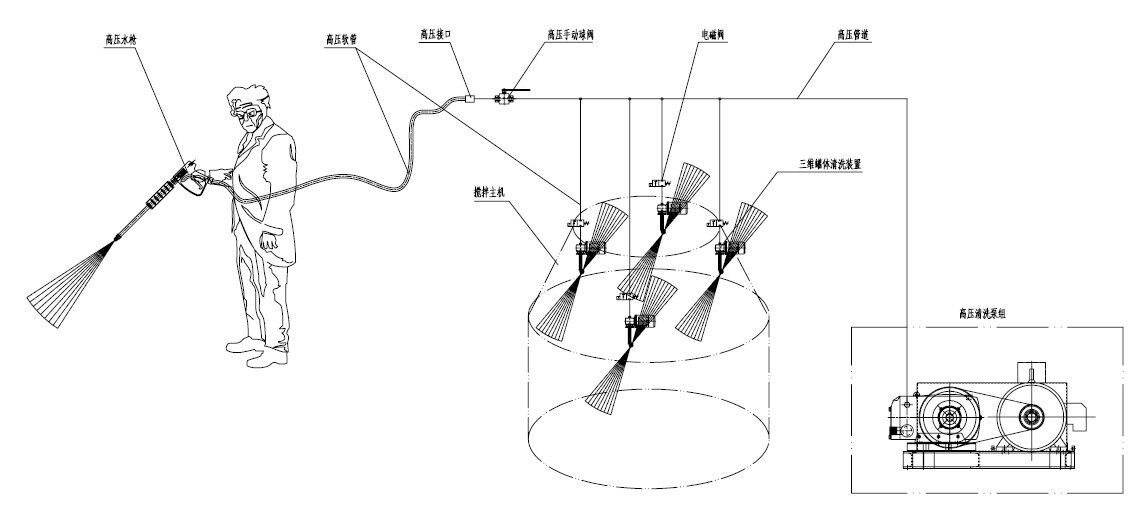 高壓清洗設備主機+三維旋轉清洗裝置,維護保養攪拌機內壁的清洗利器!