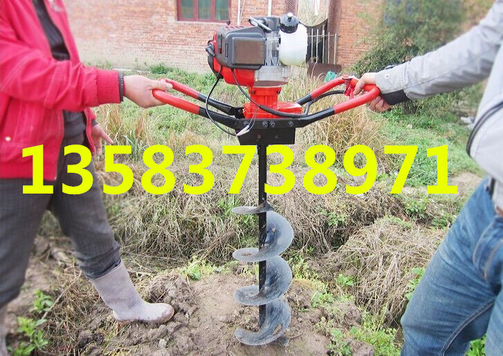 地鉆由小型通用汽油機(jī),齒輪箱及特殊設(shè)計的鉆具組成.適合在土地,凍土,冰層上打孔.廣泛用于園林,種植,植樹,物探,道路建設(shè)等領(lǐng)域. 2.鉆頭采用錳鋼合成更加的堅硬。對硬土質(zhì),超硬土質(zhì),粘土,凍土等都能工作。 3.地鉆可根據(jù)樹種,選配多種規(guī)格的鉆頭,以滿足用戶需要。 4.地鉆能夠讓人們從繁重的體力勞動解放出來,廣泛應(yīng)用于植樹造林,栽種果林、籬笆、及秋季給果樹施肥等。適合各種地形,效率高,便于攜帶及野外田地作業(yè)。 5.地鉆既可以單人操作,又可雙人操作,經(jīng)濟(jì)實用。 注意事項:1.使用正品2T(二沖程)FC級機(jī)油,嚴(yán)禁使用4T(四沖程)機(jī)油。 2.嚴(yán)禁使用純汽油。 3.嚴(yán)格按25比1的比例兌油. 4.新機(jī)器不可高速使用,請低速磨合3小時。 5.嚴(yán)禁在高速的時候突然關(guān)停發(fā)動機(jī),否則會使下次開機(jī)啟動困難。 6.感覺機(jī)器震動異常,請立即停機(jī)檢查,是否破損,松動,偏心。 7.嚴(yán)禁在有亂石堆的草地上使用。 8.鉆頭有嚴(yán)格的尺寸限制,嚴(yán)禁私自改裝或使用增大號鉆頭. 9.每工作一段時間清除火花塞、消音器積碳,清洗空氣濾清器,向齒輪箱加注黃油。 10.遇到問題自己無法解決的,不要私自拆裝。 11.機(jī)器長時間不用時,應(yīng)該將剩余的燃油倒出,然后發(fā)動機(jī)器將化油器內(nèi)的燃油全部燃燒干凈。 12.想讓機(jī)器運轉(zhuǎn)更穩(wěn)定,壽命更長請經(jīng)常保養(yǎng)。 安全事項: A.人身安全:嚴(yán)禁在室內(nèi)添加汽油,嚴(yán)防火災(zāi);機(jī)器運行時,嚴(yán)禁手腳靠近鉆頭;清理或檢查機(jī)器時必須停機(jī)。 B.機(jī)器安全:地鉆起動前必須清理草坪上的雜物,確保機(jī)器安全運轉(zhuǎn)。