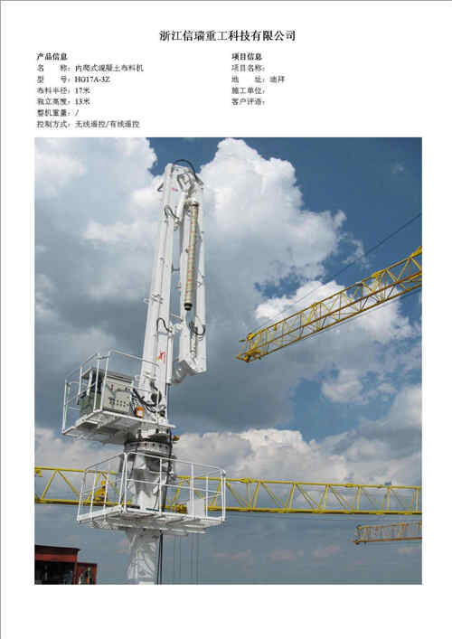 歸屬行業:信瑞重工HG17A-3Z內爬式混凝土布料機