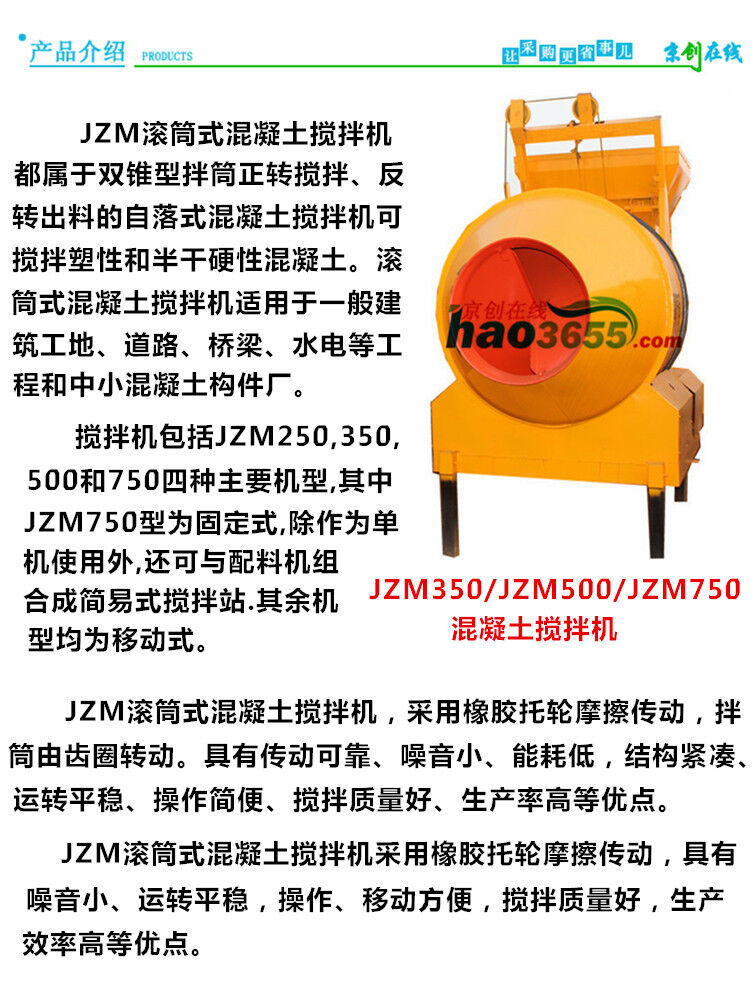 1、JZM350滾筒式混凝土攪拌機 應安置在堅實的地方,用支架或支腳筒架穩。不準以輪胎代替支撐。