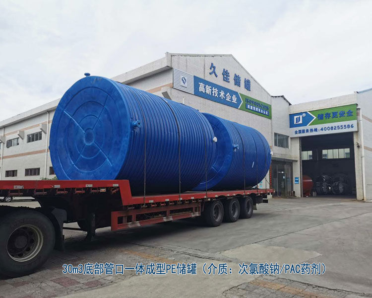 次氯酸鈉,化學式NaClO,是鈉的次氯酸鹽。又名漂白水,漂水。次氯酸鈉與二氧化碳反應產生的次氯酸是漂白劑的有效成分,強氧化劑,用作漂白劑、氧化劑及水凈化劑;用于造紙、紡織、輕工業(yè)等,具有漂白、殺菌、消毒的作用。次氯酸鈉溶液是弱堿性的,不會對PE塑料罐有腐蝕;30立方次氯酸鈉儲罐 久塑牌PE儲罐廠家 水處理 水務漂白水儲罐材質PE是聚乙烯塑料,常溫下耐酸堿性能很好,完全可以裝次氯酸鈉。
