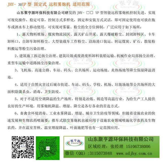 歸屬行業:聚亨源JHY-□□YP系列遠程霧炮機