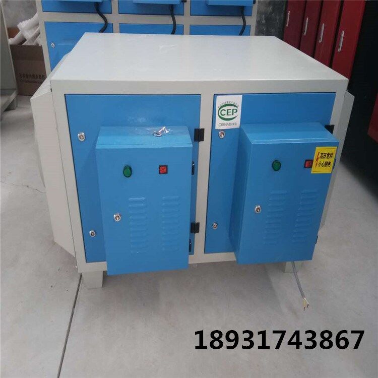 首先廢氣經均流板過濾棉進入設備時,由設備高壓穩定高頻放電,瞬間產生1.5萬伏特至2萬伏特高壓,擊穿廢氣。此階段中,長鏈、多鏈廢氣分子由于鍵能較弱,約束力較小。很容易被擊穿化學鍵破裂,從而變成小分子化合物,此為第一階段凈化。其次,隨廢氣進入設備的水分子、氧分子被高壓擊穿斷裂,生成強氧化基團羥基、臭氧分子等。這些強氧化基團與廢氣分子充分接觸氧化,加快反應進程。整個反應干凈徹底,能量利用率高,凈化效率非常高。