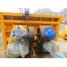 制動電動機通過減速器帶動卷筒轉動,鋼絲繩經過滑輪牽引料斗沿上料架軌道向上爬升,當爬升到一定高度時,料斗底部斗門上的一對滾輪進入上料架水軌道,斗門自動打開,物料經過進料嘴投入攪拌筒內。為保證料斗準確就位,在上料架上裝有限位開關。上限位有兩個限位開關,分別對料斗上升起限位和安全保護作用。下限位只有一個限位開關,當料斗下降至地坑底部時,鋼絲繩稍松,強簧杠桿機構使下限位動作,卷揚機構自動停車。下限位及彈簧杠桿機構均裝在上導軌頂部。上料架上部是可以折疊的。用螺栓聯接,運輸時將其折疊,以便降低運輸高度。