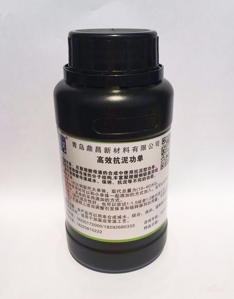 高效抗泥功單是青島鼎昌新材料有限公司獨立研發的一種應用于聚羧酸母液合成的功能性單體。該產品是基于分子設計的理念,利用有機合成的技術合成的一種可用于自由基聚合的不飽和單體。它的分子結構既不同于不飽和醇聚氧乙烯醚(大單體),又不同于丙烯酸、丙烯酸羥乙酯、甲基烯丙基磺酸鈉等小單體,它可以吸附在膠凝材料顆粒表面,起到“錨固”作用,也可以起到空間位阻的作用。xhudli$&159*