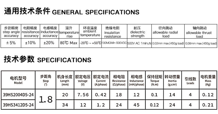 兩相1.8°混合式步進電機39系列步進電機