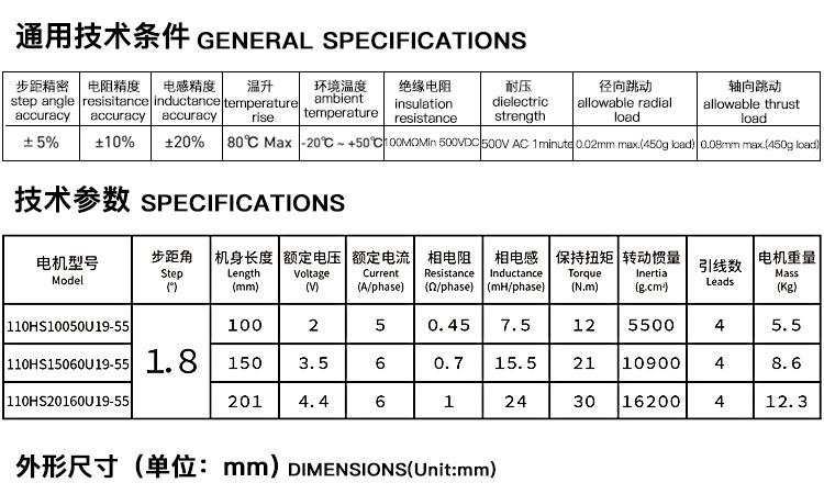 歸屬行業:兩相1.8°混合式步進電機110系列步進電機