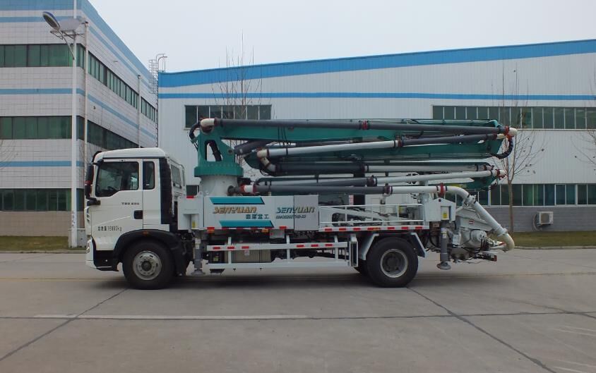 1)五節臂技術:33米泵車采用五節臂架結構,施工更加靈活方便;整車長度更短,整車高度更低。