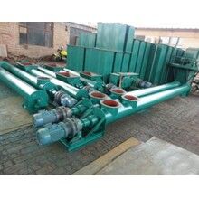 螺旋輸送機螺旋面的形式有實體螺旋(S制法)和帶式螺旋(D制法)兩種。各螺旋軸之間采用法蘭式聯接, 保證了聯接軸的互換性,便于維修。 螺旋輸送機機蓋為瓦片式并用蓋扣夾緊在機殼上,若需改進密封性能,用戶可自行在機蓋與機殼間加防水粗帆布。 螺旋輸送機進,出料裝置有進料口,方型出料口,手推式出料口,齒條式出料口四種,由用戶在使用現場在機體上開口焊接。布置螺旋輸送機進,出料口位置時應注意保證料口至端部的距離,同時避免料口與吊軸承加油杯,機殼聯接法蘭,底座等相碰。