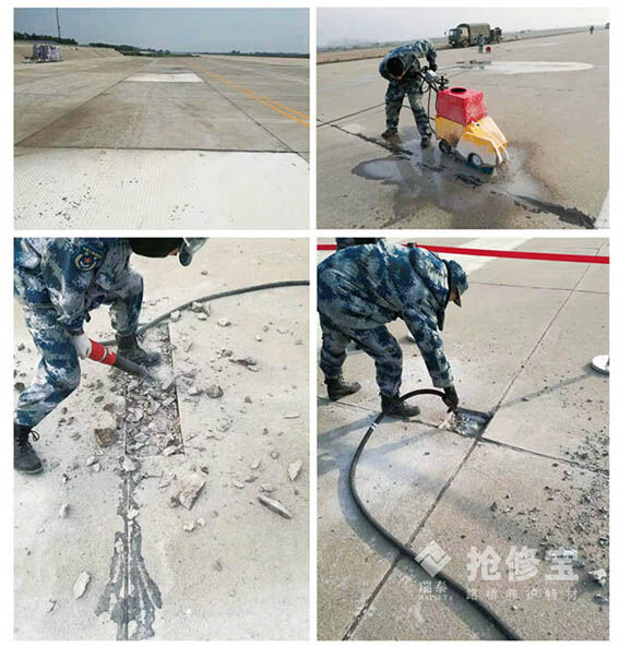 【搶修寶】機場道面專用特材,專用于機場跑道、停機坪等快速修補及整體換板工程,通航時間快、1-2小時強度可達30MPA以上,強度高、耐磨性強、防腐蝕抗凍融性好,不受環境溫度限制,零下15度至高溫45度都可正常使用。