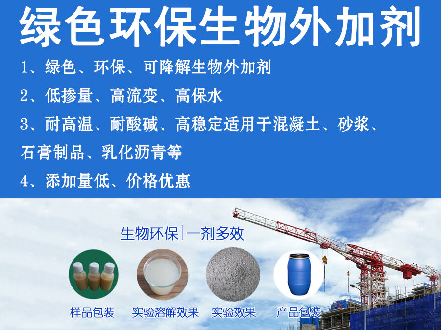 配伍性好:本產品屬高分子生物聚合物,耐酸堿性強,不與組分中的其他材料發生反應,與所有常用的摻料包括萘、三聚氰胺以及聚酸酸類外加劑都可兼容。