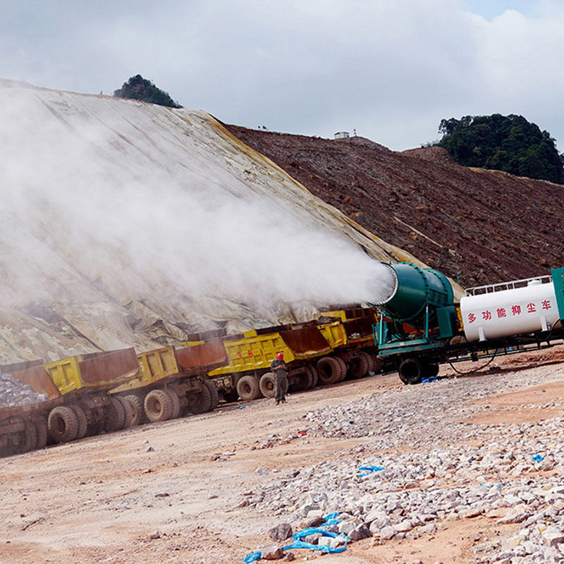 霧炮機降塵系統是用噴嘴將水霧化好之后,噴灑在灰塵較多的起源地,干燥的灰塵在空中慢慢加濕,而且水霧細小在空氣中懸浮時間會長一些,能有效的控制粉塵的發生。