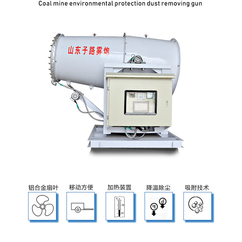 子路環保科技有限公司一款通過高壓風機將儲存的水壓縮成灰塵大小,在利用不銹鋼噴嘴部位將水霧化吹向高空凈化空氣的一種新型環保除塵產品。這款產品名字叫高射程霧炮機,