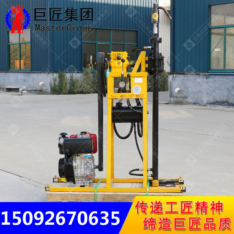 是一款具有油壓給進的高中低速鉆機。該鉆機適用于山地、丘陵、河道等復雜地形的地質鉆探、建筑物的工程地質勘察、爆破孔的鉆進等方面。為滿足不同用戶的需求,該鉆機可選配柴油機、汽油機或電機三種動力中的一種,默認為柴油機動力。