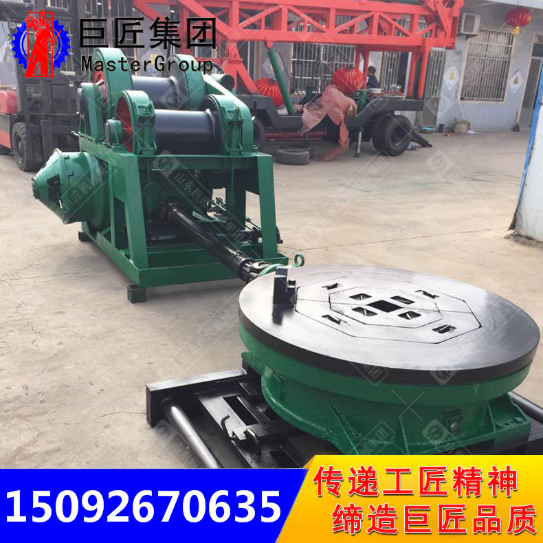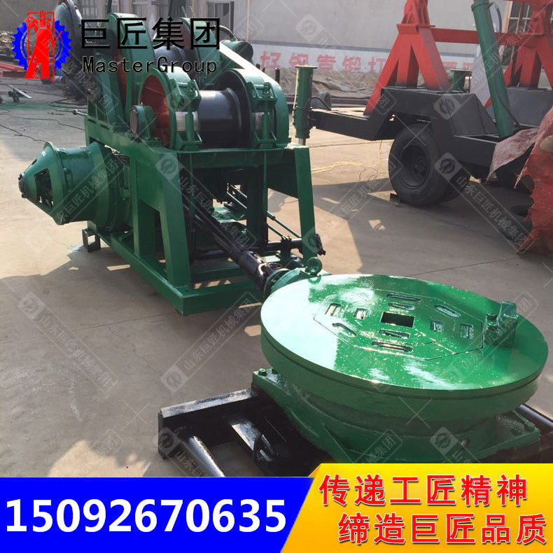 3、鉆機工作時用泥漿沖洗液(正循環),轉盤回轉帶動鉆具轉動。用卷揚系統實現減壓鉆進、升降鉆具、下井管、沖擊取樣、立放鉆塔等。
