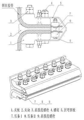 鋁合金夾具,夾具采用綜合性強(qiáng)的鋁,此材料柔韌性,剛性,抗沖擊性,拉斷性是綜合指數(shù)高的一種材料海順德橡膠是國(guó)內(nèi)最早研制鋼絲繩芯提升帶的專業(yè)生產(chǎn)廠家.