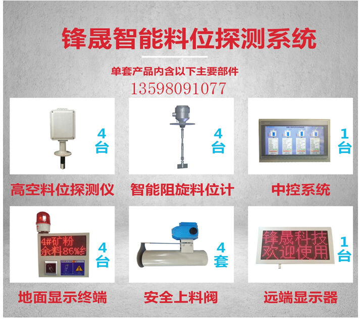 由高空料位探測儀、阻旋式料位計、中控系統、地面顯示終端、安全上料閥、遠程顯示器六大子系統組成!
