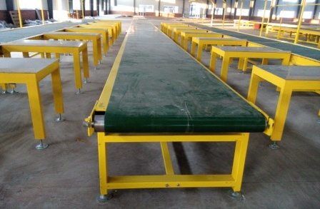 皮帶輸送機根據(jù)用戶現(xiàn)場使用情況,多口出料,實現(xiàn)一套管鏈,多點投料,多點出料。使用螺旋張緊或液壓油缸張緊時,張緊滾筒的兩個軸承座應(yīng)當同時平移,以保證滾筒軸線與皮帶縱向方向垂直。可雙向運轉(zhuǎn)輸送物料,可與其它輸送設(shè)備和物料分揀配合使用,實現(xiàn)物料出入庫或車輛裝卸的自動化生產(chǎn),在各行業(yè)中均廣泛的應(yīng)用。