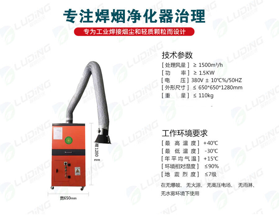 焊接煙塵又稱為電焊煙霧,是指焊接操作中經常會產生一些有毒的物質。如:乙醛、松香酸、異氰酸鹽、氮氧化物、硫化物、碳氫化合物等。焊接煙塵是一種十分復雜的物質,lans已在煙塵中發現的元素多達20種以上,其中含量多的是Fe、CaNa等,其次是SiAl、Mn、Ti、Cu等。焊接煙塵中的主要有害物質為Fe2O3、SiO2Mao、HF等,其中含量多的為Fe2O3,一般占煙塵總量的35.56 ,其次是SiO2,其含量占1020 Mao520 左右。