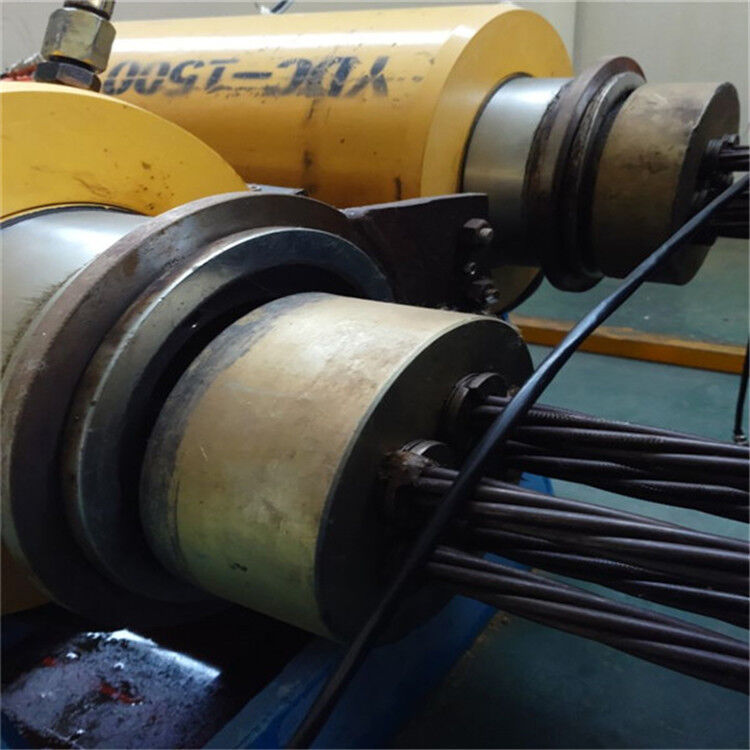 千斤頂就位后,先將主油缸少許充油,使之蹬緊,讓預應力鋼絞線繃直,在鋼絞線拉至規(guī)定的初應力σ0時,停機量測原始空隙并畫線作標記。