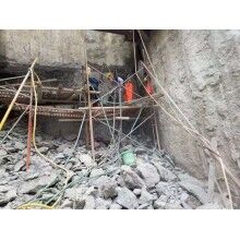 劈裂機應用于不能爆*作業并要求產量高、工期緊等技術難度大的土石方工程,東莞盤古斧限公司生產的盤古斧巖石劈裂機鉆孔直徑已達到24厘米以上,鉆孔間隔3到5米一排,挖機吊裝放入巖石孔中,兩分鐘左右可脹裂開石頭50立方左右,一天輕松破碎堅石上千立方,比使用炮錘+切割機或膨脹破碎劑的方式快十倍以上,且成本低。比用切割機的優勢是一臺能頂十臺的效率,降低水電費,噪音和污染改善,工期提前成本降低;比起用膨脹破碎劑的優勢是鉆孔直徑大、間隔大,裂縫更大、效果更好、更易于破碎解小,立即見效不用等待、不間斷重復作業,不受雨水和溫度影響,無噴漿和強堿性危害。