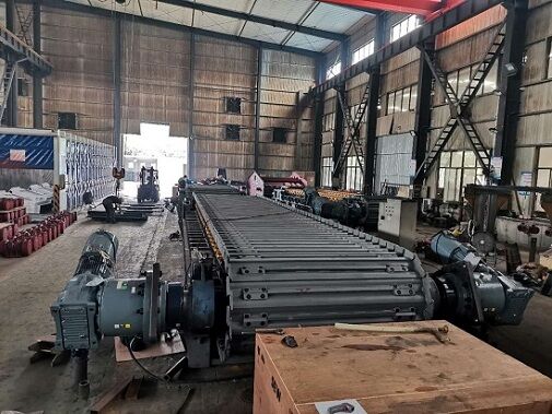 (3)輥體通過卡鍵定位在通軸上,并鎖緊,輥體長度與負(fù)荷槽板上固定運(yùn)轉(zhuǎn)鏈條的加厚槽板等長并對應(yīng),支承回程槽板負(fù)荷。