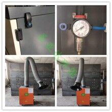 焊煙凈化器通過風機引力作用,焊煙廢氣經過萬向柔性吸氣臂設備向吸塵罩吸入焊煙凈化器進風口,進風口設有阻火器,火花經過阻火器被阻留,煙塵氣體進入沉降室,利用重力與上行氣流,先將顆粒廢氣直接將至灰斗,微型顆粒煙塵被濾芯捕集在外表面,潔凈氣體經濾芯過濾凈化后,由濾芯流入潔凈室,潔凈空氣又經過活性炭過濾器吸附進步凈化后經風口達標排出。
