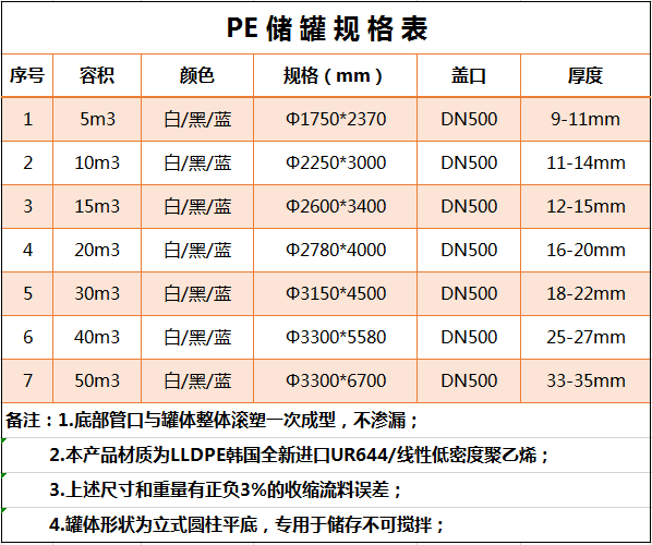 久佳塑料儲罐參數: