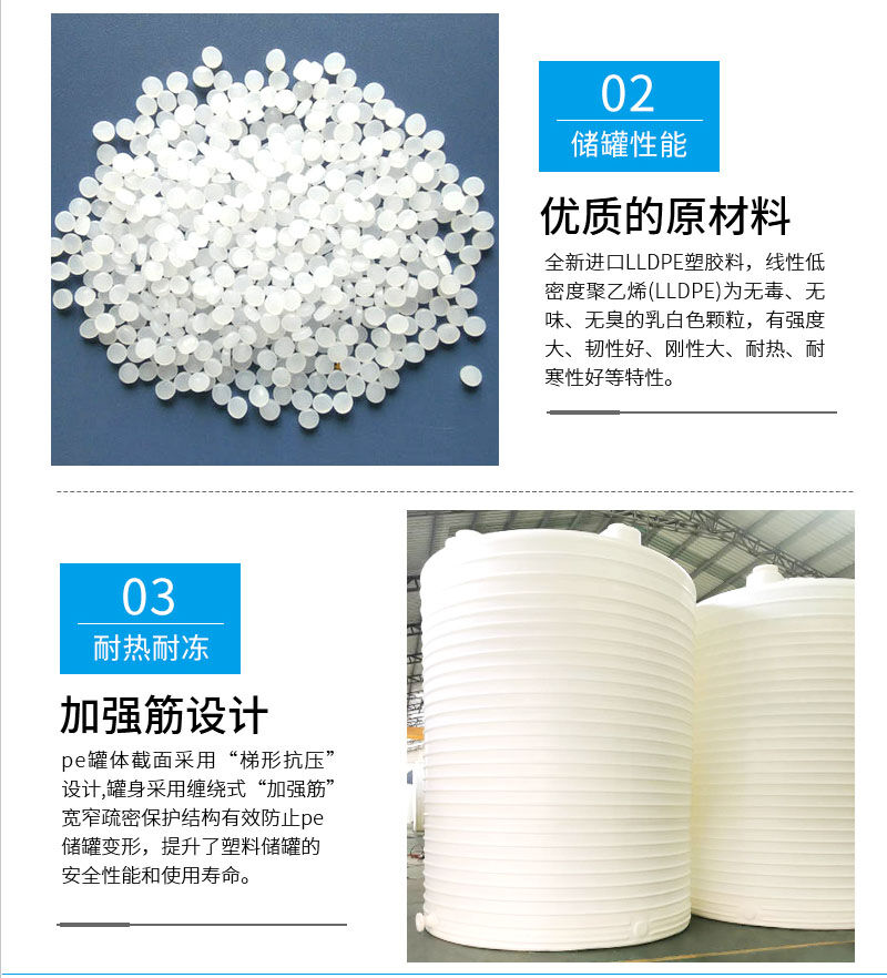 規格:1噸塑料儲罐,2噸塑料儲罐,3噸塑料儲罐、5噸塑料儲罐、10噸塑料儲罐、15噸塑料儲罐、20噸塑料儲罐、30噸塑料儲罐、40噸塑料儲罐、50噸塑料儲罐