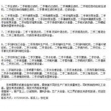 主要包括二手離心機,臥螺離心機,二手碟式離心機,二手臥式螺旋沉降離心機,二手反應釜,二手不銹鋼反應釜,二手搪瓷反應釜,二手搪玻璃反應釜,二手壓濾機,二手板框壓濾機,二手箱式壓濾機,二手過濾機,二手干燥機,二手管束干燥機,二手流化床干燥機,氣流干燥機,管束干燥機,滾筒干燥機,二手閃蒸干燥機,二氣流噴霧干燥機,壓力噴霧干燥機,離心噴霧干燥機,并流噴霧干燥機,冷凍干燥機,真空干燥機,雙錐回轉真空干燥機,二手蒸餾塔,二手酒精塔,二手振動篩,流化床振動篩,蒸餾釜,二手貯罐,不銹鋼儲罐,玻璃鋼儲罐,臥式儲罐,防腐儲罐,液氨儲罐,二手蒸發器,薄膜蒸發器,雙效蒸發器,三效蒸發器,二手高頻振動篩,二手振動篩,二手導熱油爐,二手蒸汽鍋爐,二手米糠油機械,二手胚芽油機械,二手榨骨機設備,二手蒸脫機,二手蒸炒鍋,二手軟化滾筒、軋胚機、烘干機、剝殼機、振動流化床干燥機、圓篩、振動篩、平篩、膨化機及進口膨化機、板框過濾機、振動排渣葉片過濾機、冬化過濾機、離心機、阿法拉發碟式分離機、脫皂機、冷凝器、換熱器、水化罐、精煉罐、脫臭罐、脫色罐、立絞籠、平絞籠、提升機等,進出口色拉油設備、生化油設備、氫化油設備、生物柴油設備、設備及各種零配件等。