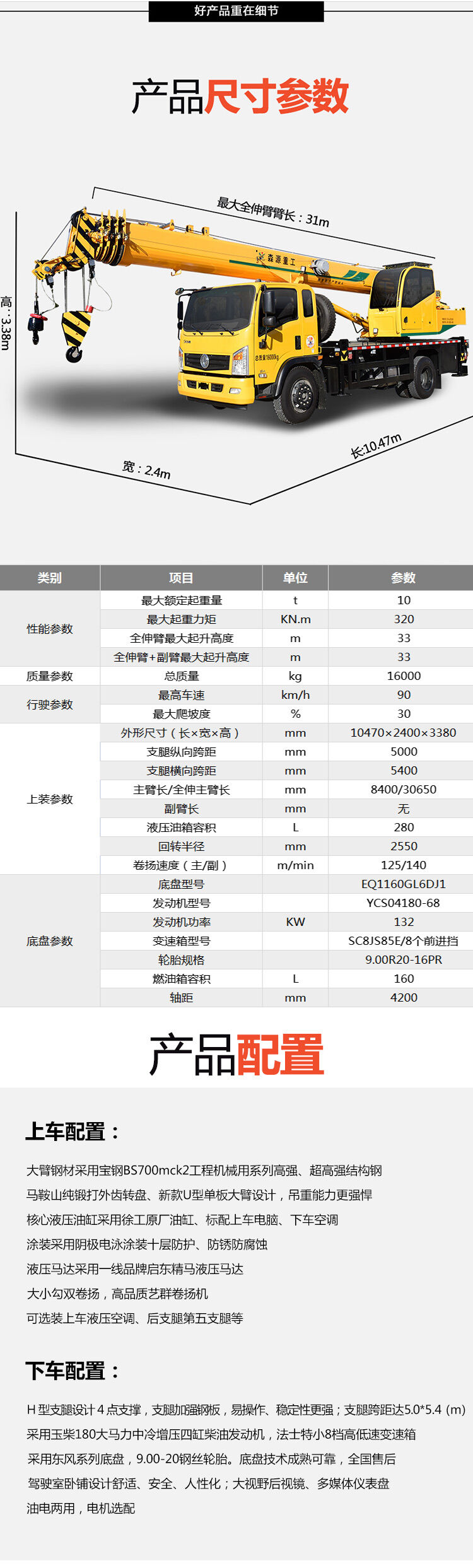 歸屬行業:工地用吊車起重機 小型液壓汽車吊 高效吊重能力強 森源重工