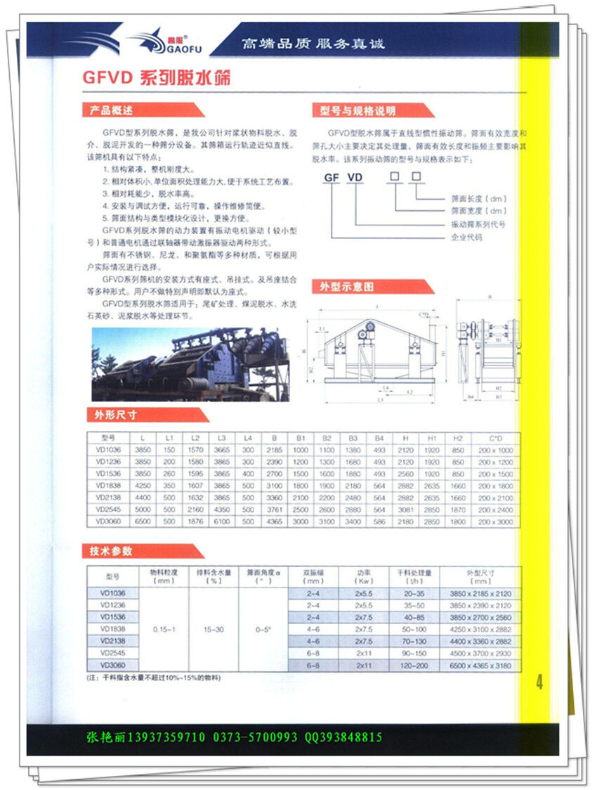 l 高服脫水篩專用于尾礦干排、廣泛用于精礦脫水、煉泥漿濃縮、除屑、炭漿分離等行業。咨詢電話:13937359710張艷麗 0373-5700993 QQ209465770
