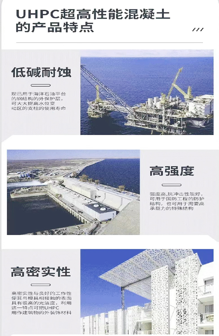 UHPC超高性能混凝土RPC活性粉末混凝土預制構件預應力風電混合塔架生產線,采用山東冠成機械生產的立軸行星式攪拌機由礦物質摻合料、骨料、纖維、外加劑和水等原材料充分攪拌制成的具有超高力學性能、超高抗滲性能的高韌性水泥基符合材料。UHPC根據配方不同也加入了鋼纖維,產品具有低堿耐腐、高強度、高密實性。在風電混合塔架混凝土塔筒、市政管井蓋板、橋梁預制件、橋堆橋面板拼接修復、高速公路鋪裝翻新、高架路H型梁預制、預制防護欄、18米電線桿等各種預制構件應用。快私信我們咨詢廠家報價18505380918