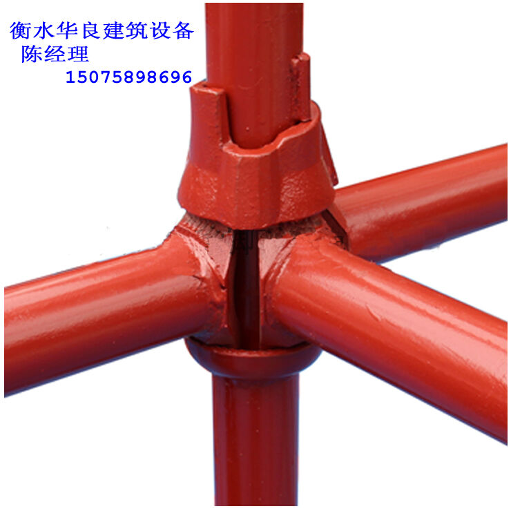 碗扣腳手架獨特的結點設計,雖仍應歸為鉸接,但卻能夠承受相對更大的荷載,再加上其立桿上的上碗和橫桿上的插片均為鍛鋼的工藝,使這款碗扣腳手架系統,在國外被廣泛地應用于化工廠、煉油廠、油田以及大型船艦維修等荷載相對較高的領域。考慮到系統的穩定性,安裝斜桿是必須的。為了補足這個弱項,該系統特意設計了另外一類斜桿,在斜桿的兩頭,均用高強度螺栓,各固定半個旋轉扣件,扣件亦采用鍛鋼工藝。這樣,盡管斜桿無法直接在碗扣的結點扣接,但可以用扣件扣接在橫桿或立桿的適當位置上,也大大地改善了系統的穩定性。