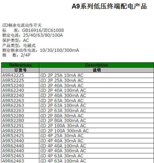 歸屬行業:施耐德動作開關iID 2P 80A 30mA AC