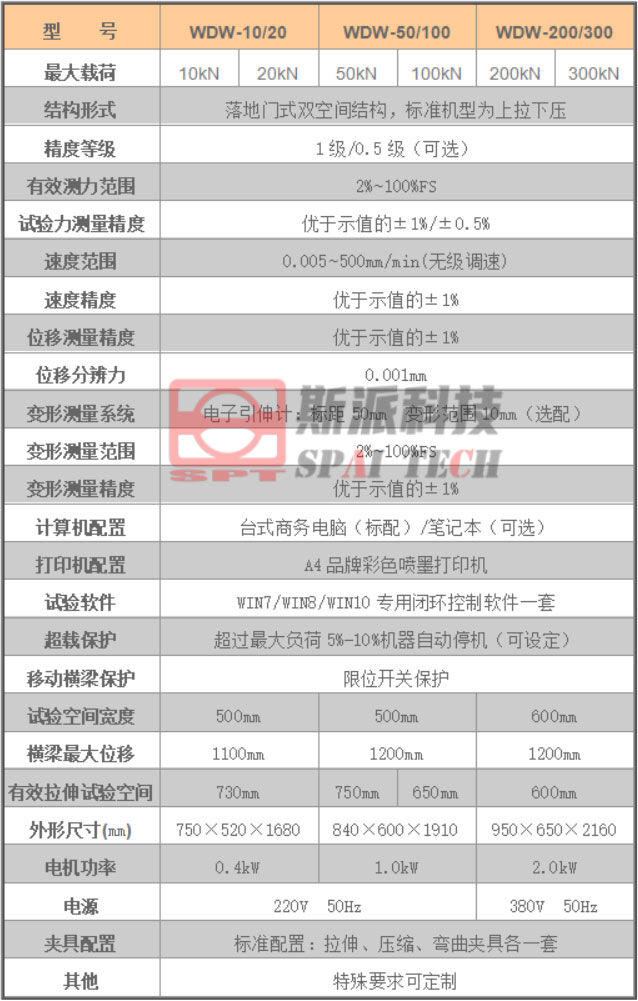 WDW系列大門式微機(jī)控制電子萬能材料試驗機(jī)采用穩(wěn)定的門式主機(jī)結(jié)構(gòu),選用日本松下(Panasonic)伺服調(diào)速系統(tǒng)、精密設(shè)計同步減速系統(tǒng)、臺灣上銀(HIWIN)/銀泰(PMI)滾珠絲杠、美國傳力(Trancell)/世銓(Celtron)力傳感器等主要部件,主要應(yīng)用于金屬、非金屬材料及制品的拉伸、壓縮、彎曲等力學(xué)性能試驗,具有結(jié)構(gòu)簡單、穩(wěn)定可靠、外形美觀等特點,深受廣大用戶的歡迎。