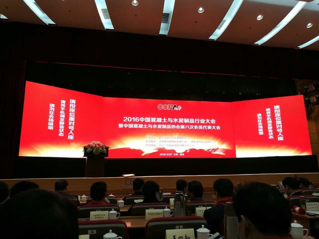2016年12月6日,以“創新驅動、質量為本、綠色發展”為主題的2016中國混凝土與水泥制品行業大會暨中國混凝土與水凝制品協會第八次會員代表大會在南京召開。