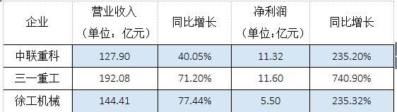 表現在財務上,毛利率水平得到了極大的改觀!以中聯重科、三一重工、徐工機械三家上市公司上半年財報數據喜人。
